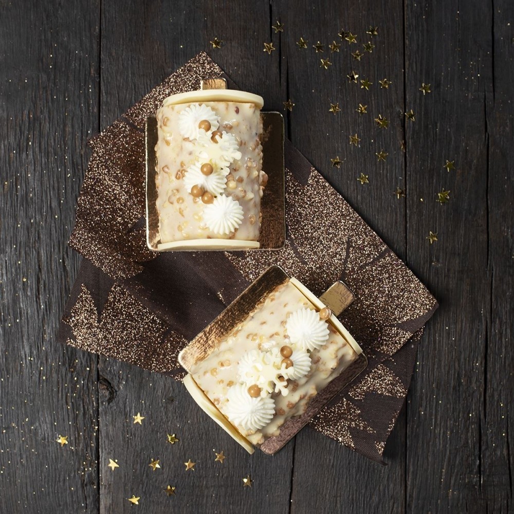 Un biscuit viennois, un crémeux vanille et une ganache montée chocolat blanc vanille. Cette pâtisserie est surgelée après fabrication pour garantir qualité et fraîcheur. Ne la recongelez pas.